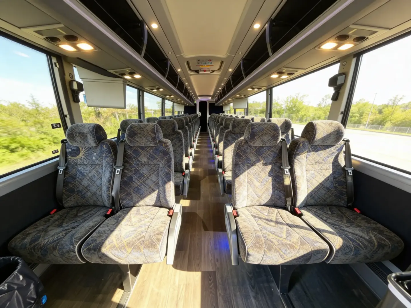 Claremont Charter Bus Company offers amenities that make group travel comfortable, efficient, and fun for every passenger. You can choose a bus with WiFi, power outlets, reclining seats, on-board restrooms, and ADA-accessible features to keep everyone connected and comfortable on the road. We also offer exclusive options like a PA system for tour leaders, flat-screen TVs for entertainment, and even a driver's lounge for relaxing off-shift. From extra-large luggage bays and bike racks to premium leather interiors and self-serve snack stations, you'll get the best amenities in Southern California when you book with us.